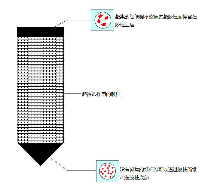 微柱凝膠技術(shù)是液相技術(shù)與固相技術(shù)的巧妙組合,是凝膠過濾技術(shù)、離心技術(shù)、紅細(xì)胞凝集試驗(yàn)技術(shù)(特異性抗體抗原反應(yīng))的完美結(jié)合。通過對(duì)凝膠種類的選擇和凝 膠濃度的調(diào)節(jié)來控制分子篩孔徑大小,使分子篩只允許游離紅細(xì)胞通過,從而達(dá)到分辯凝集紅細(xì)胞和非凝集紅細(xì)胞的目的。